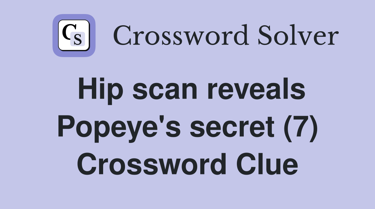 Hip scan reveals Popeye #39 s secret (7) Crossword Clue Answers
