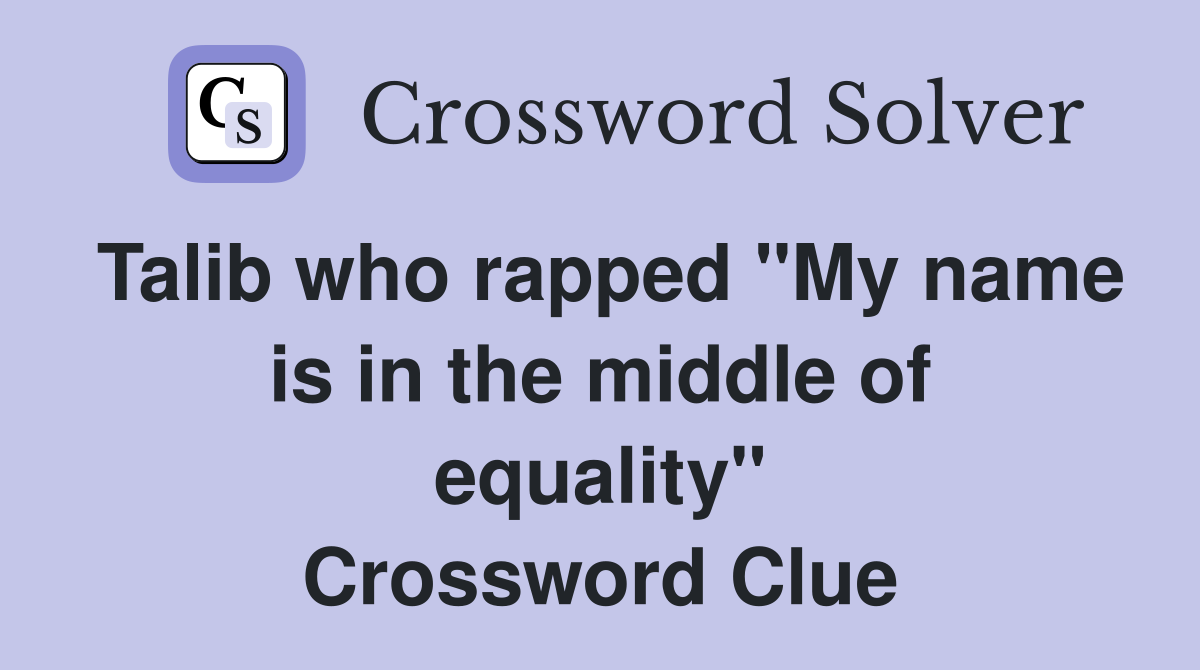 Talib who rapped quot My name is in the middle of equality quot Crossword