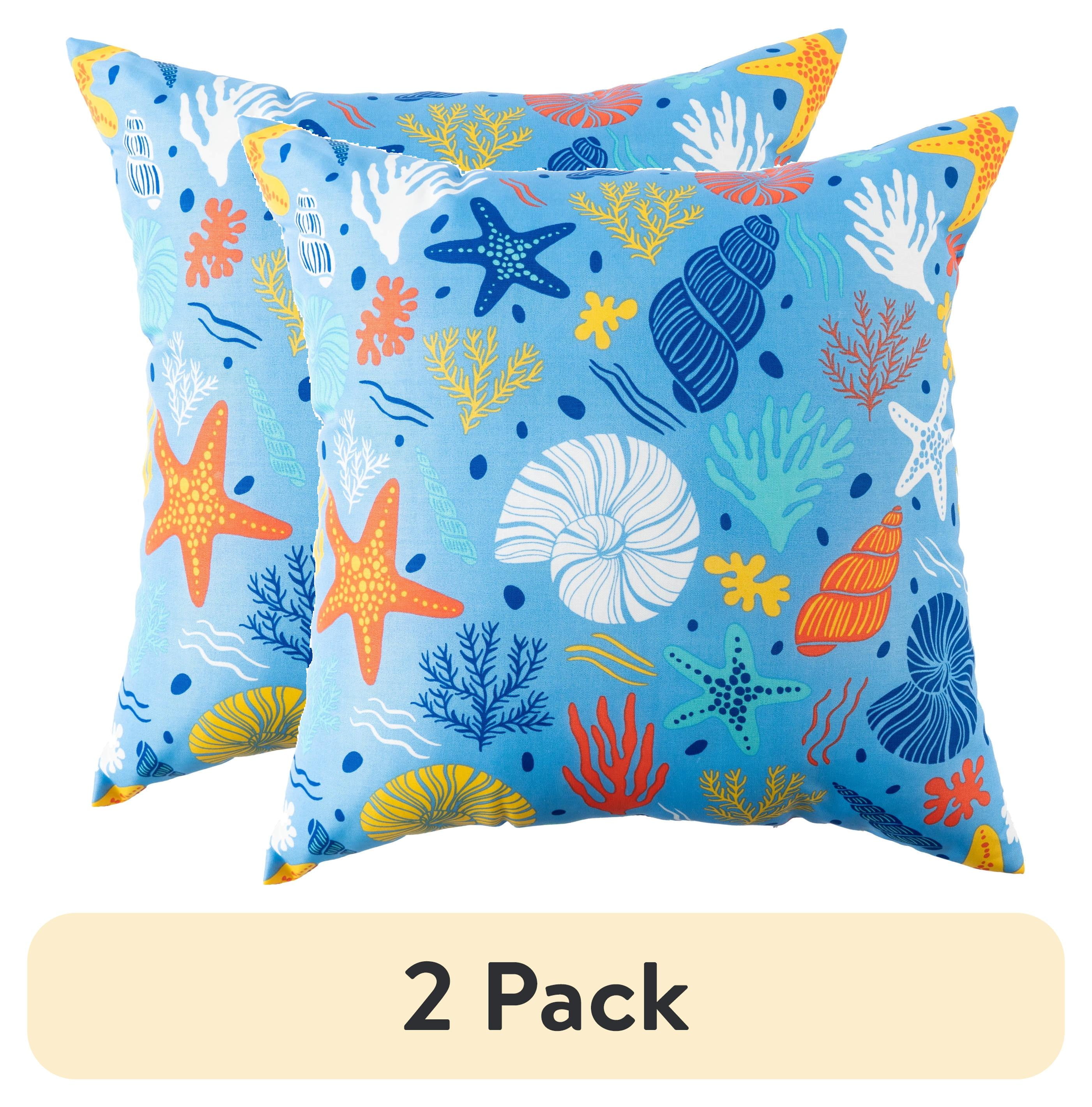 (1 pack) Mainstays Coastal Sea Life Reversible Outdoor Throw Pillow 16
