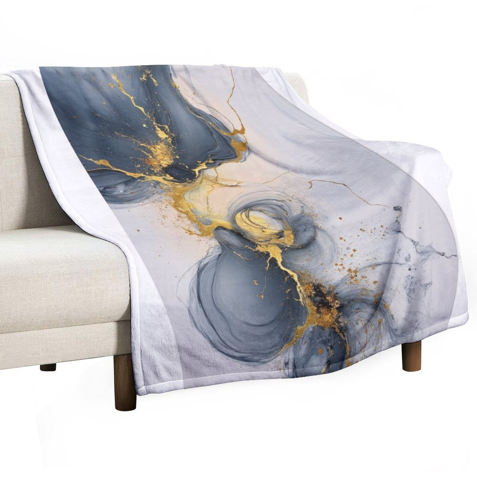 Abstract Gold Blue Swirl Art Blankets Bedroom Living Room Sofa Throw