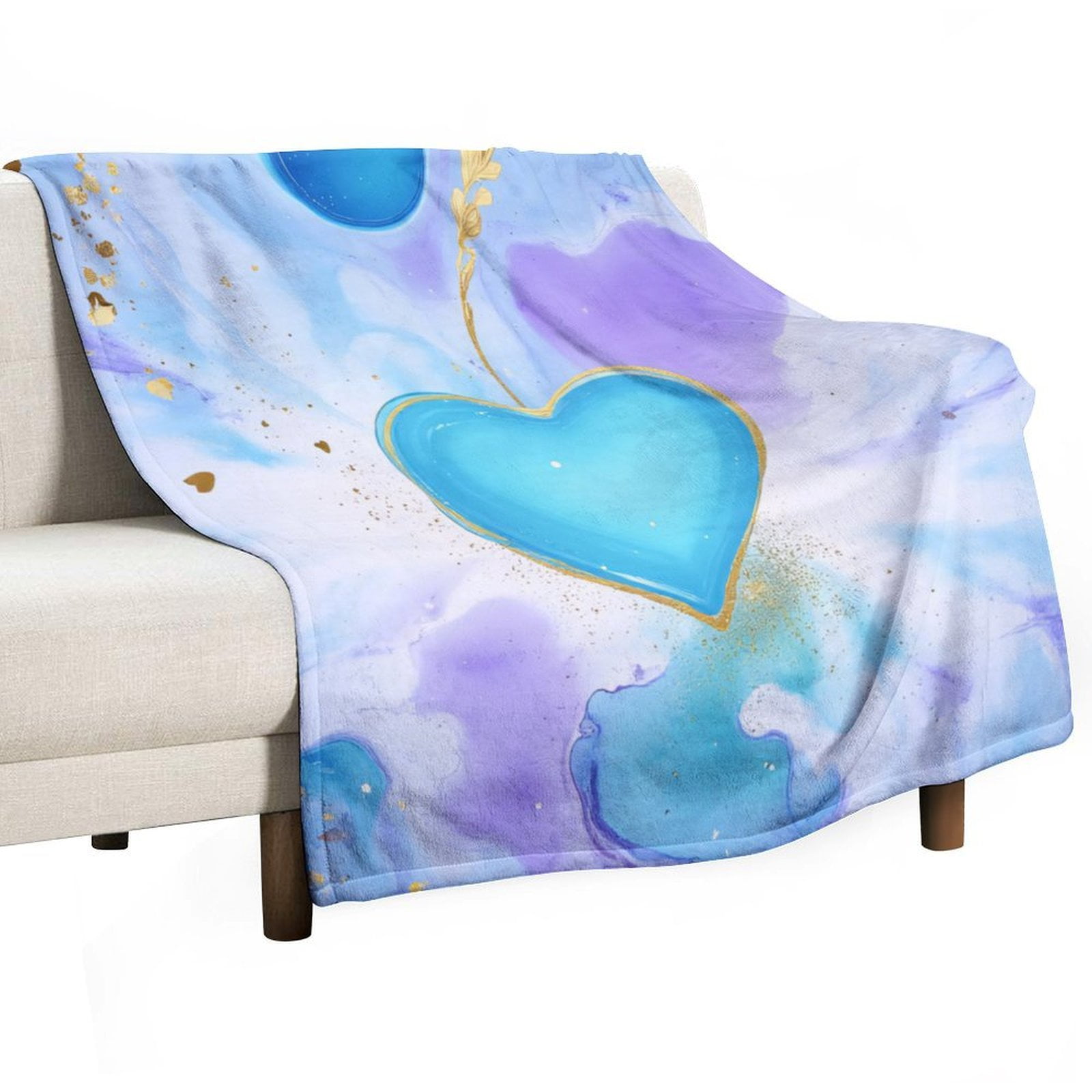 Blue Heart Marble Print Blankets Bedroom Living Room Sofa Throw