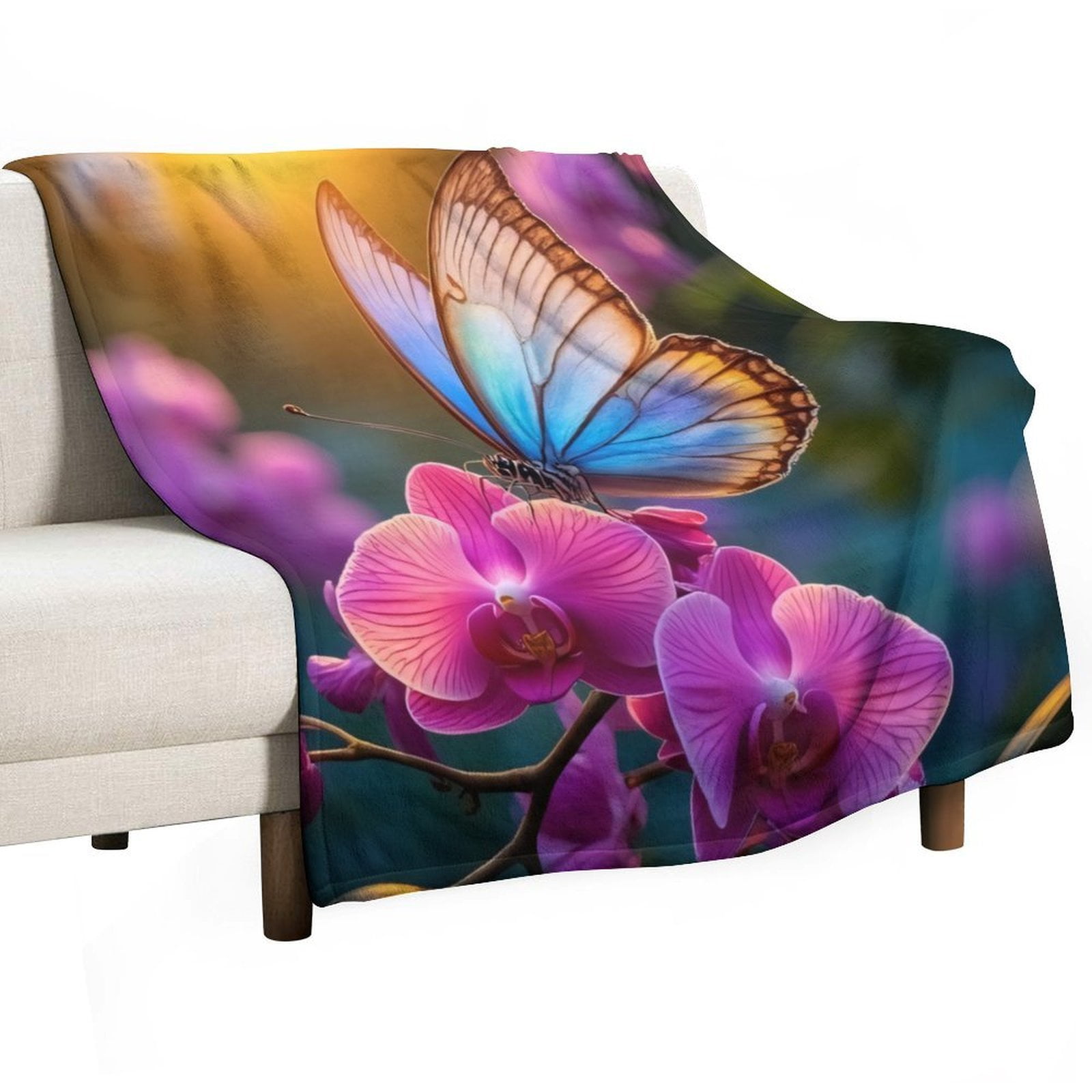 Butterfly Orchid Bloom Blankets Bedroom Living Room Sofa Throw Blankets