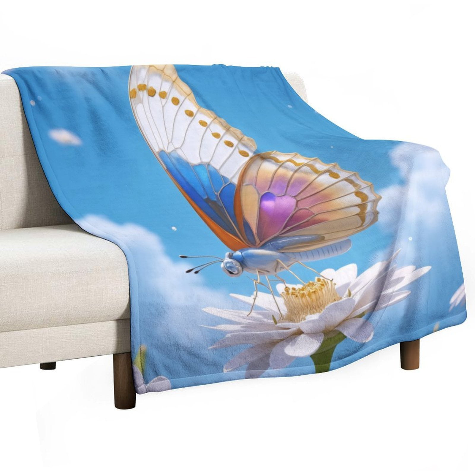 Butterfly on Daisy Flower Blankets Bedroom Living Room Sofa Throw