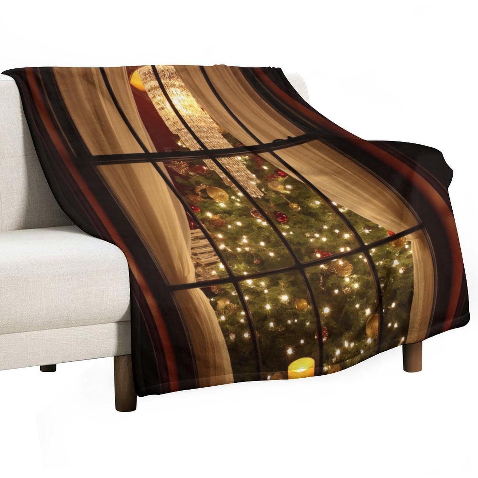 Christmas Tree Through Window Blankets Bedroom Living Room Sofa Throw