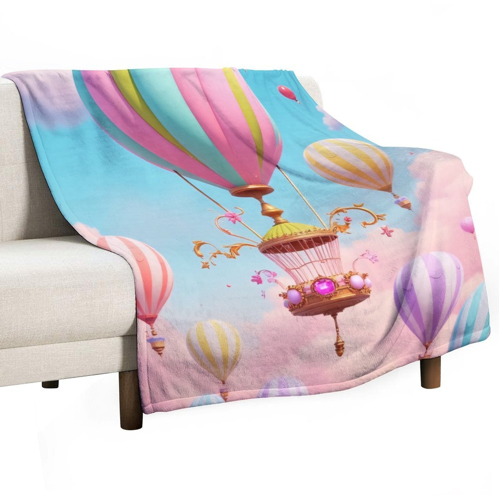 Colorful Hot Air Balloons in Sky Blankets Bedroom Living Room Sofa