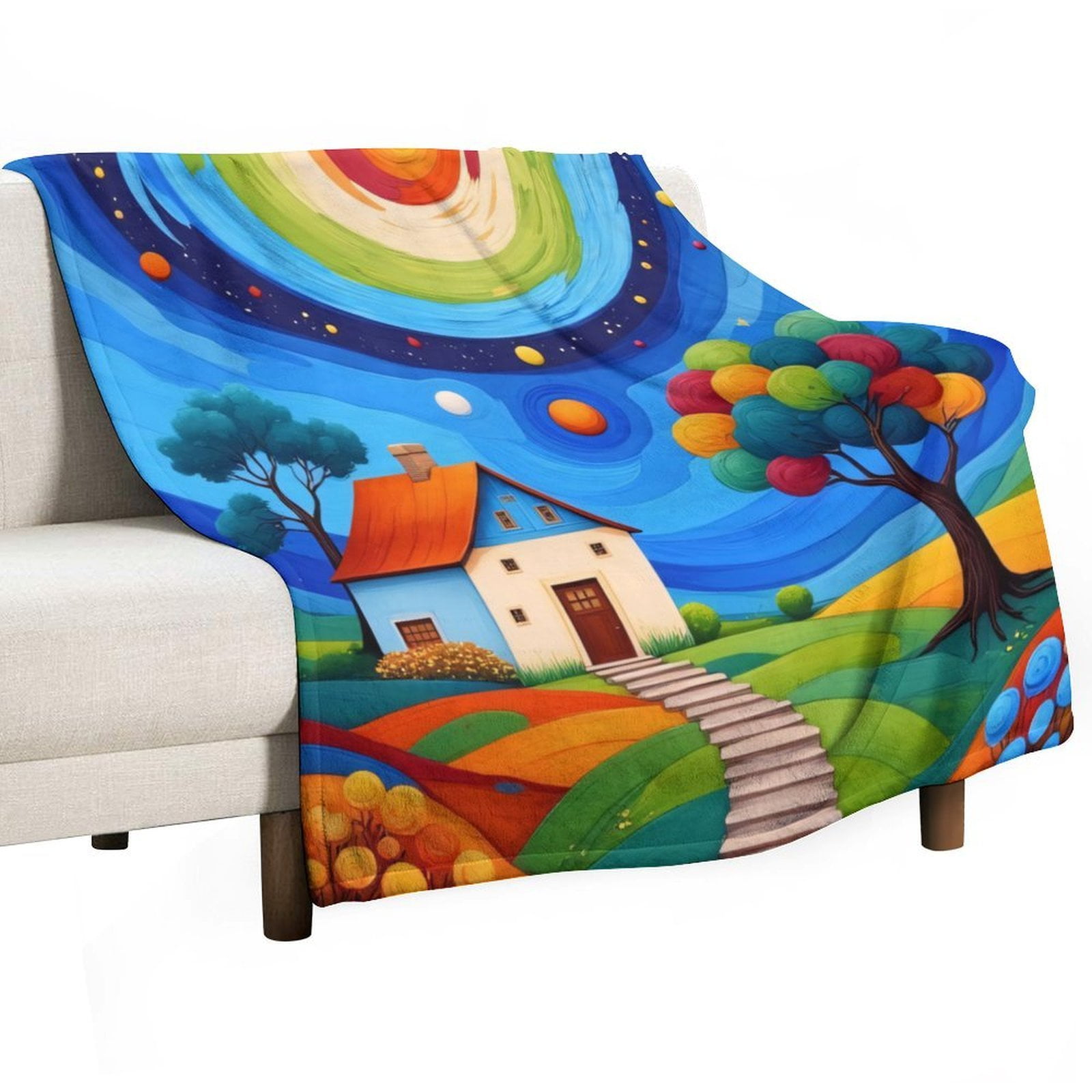 Colorful House Landscape Blankets Bedroom Living Room Sofa Throw
