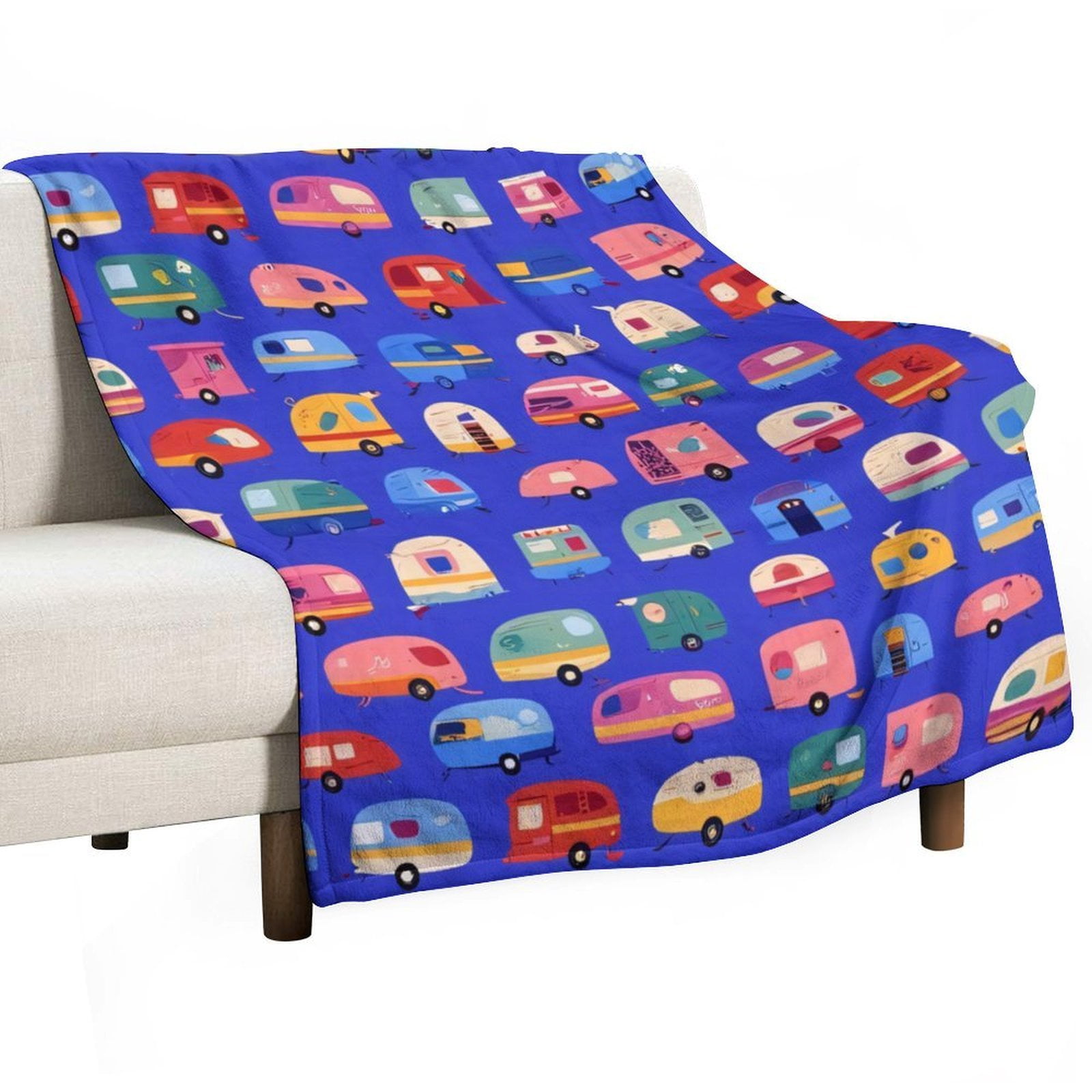 Colorful RVs And Campers Pattern Blankets Bedroom Living Room Sofa
