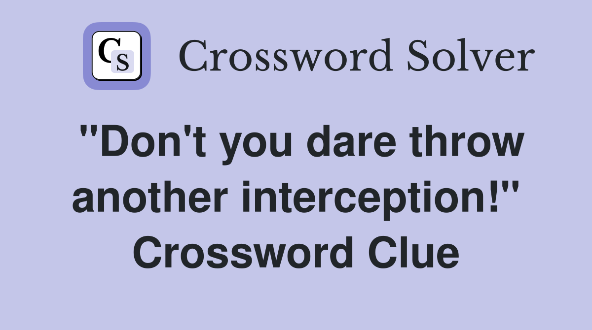 quot Don #39 t you dare throw another interception quot Crossword Clue Answers