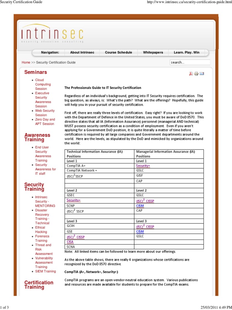 Security Certification Guide PDF Comp Tia Test (Assessment)