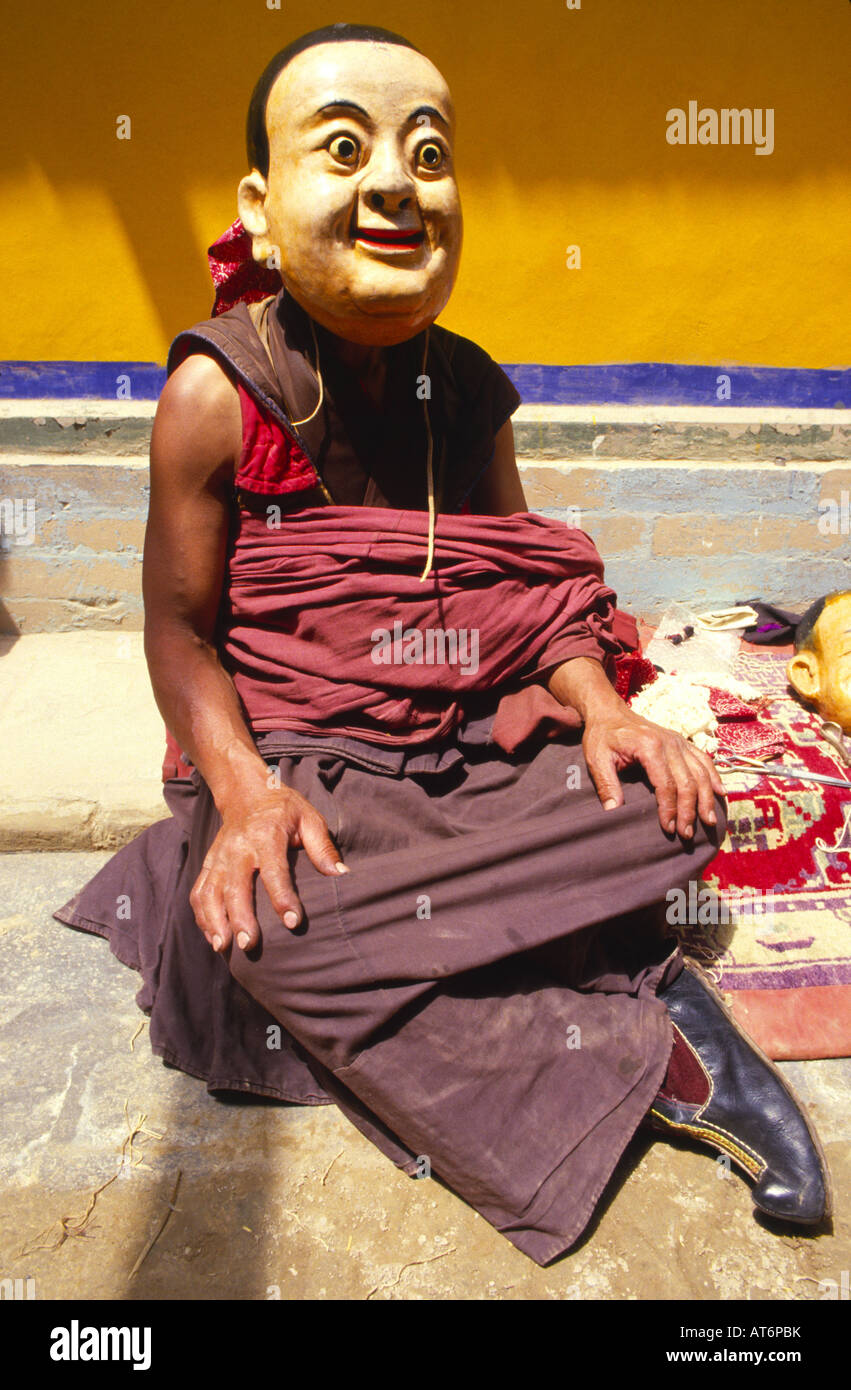 Tibetan monk with mask Stock Photo Alamy