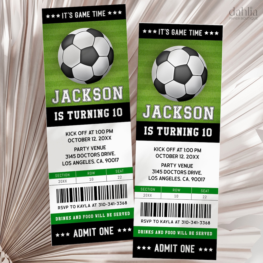 Soccer Ticket Birthday Invitation Canva Template Editable Football