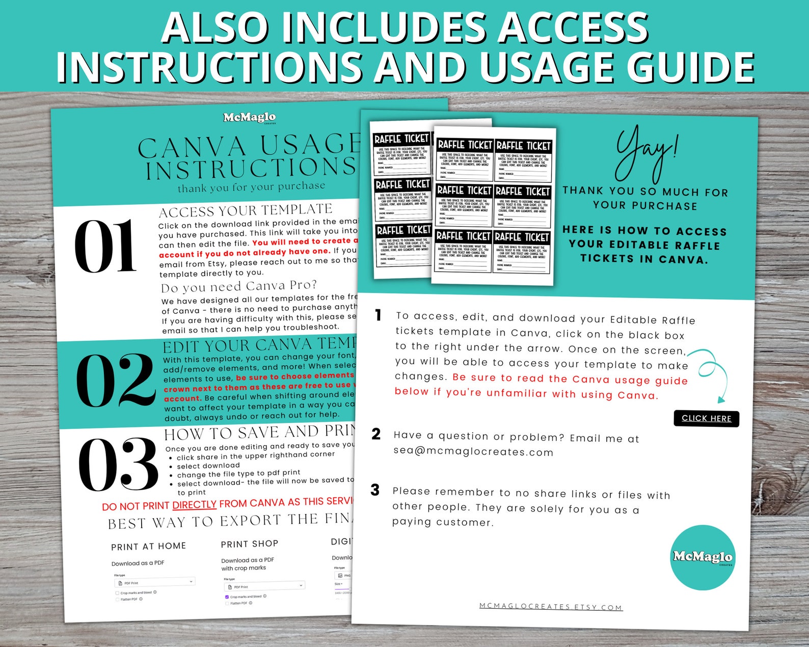 Editable Raffle Ticket Template Printable Raffle Ticket Etsy