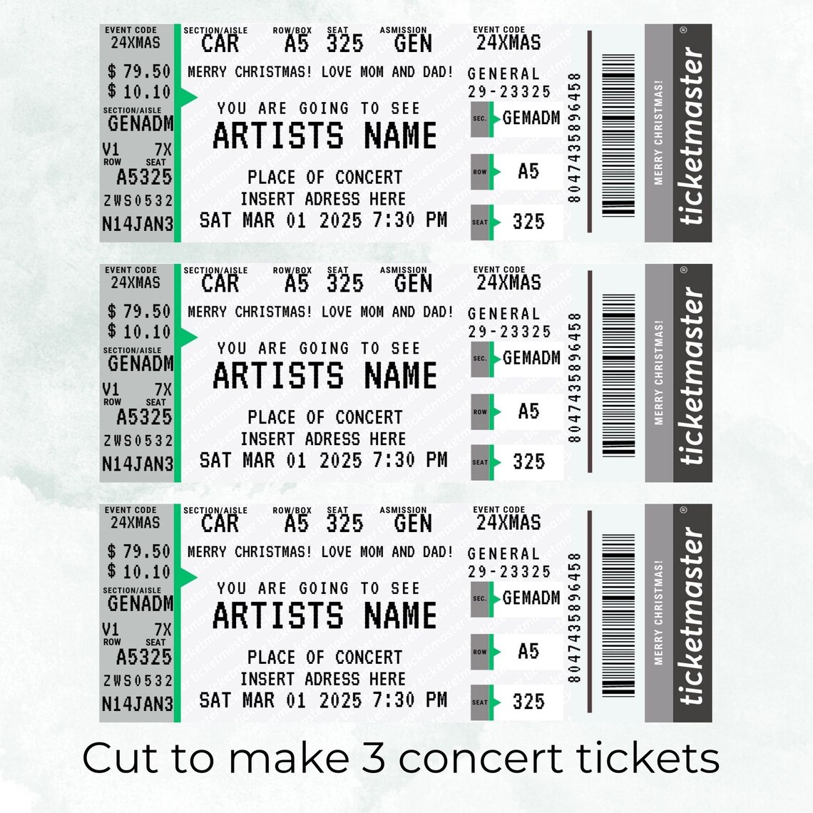 Custom Ticketmaster Concert Ticket Template Surprise Concert Gift