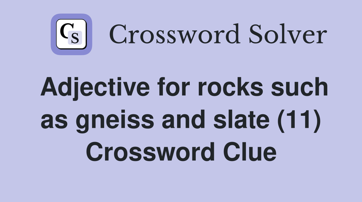 Adjective for rocks such as gneiss and slate (11) Crossword Clue
