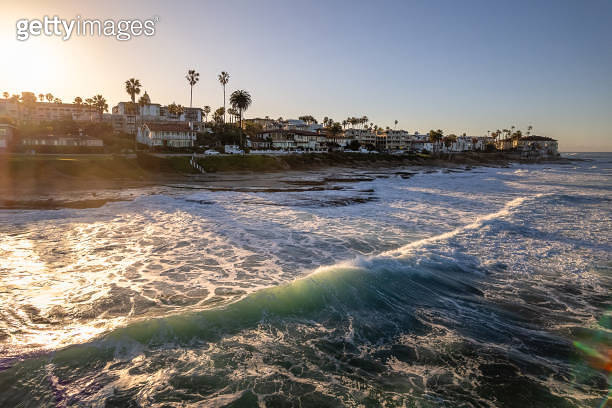 Drone photo of king tide splashing the coasts of La Jolla San Diego
