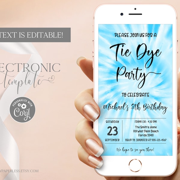 EDITABLE Tie Dye Invitation Tie Dye Birthday Invitation Etsy