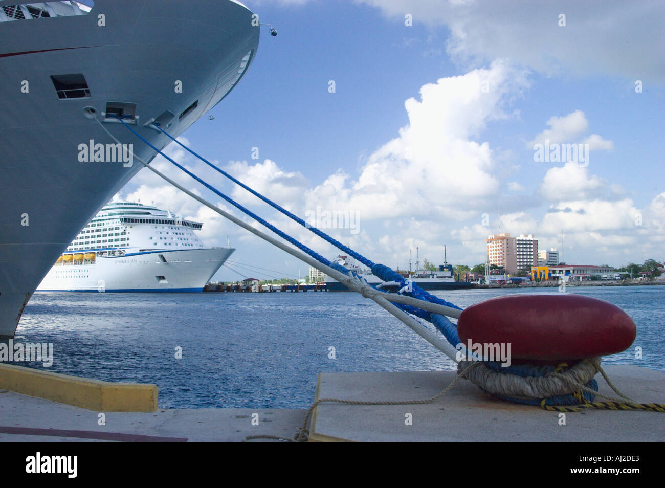 Cruise ship tied up at pier another ship in background Stock Photo Alamy
