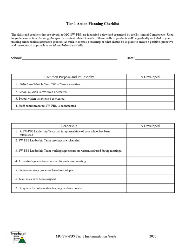 HO APC Tier 1 Action Planning Checklist PDF Lesson Plan Leadership