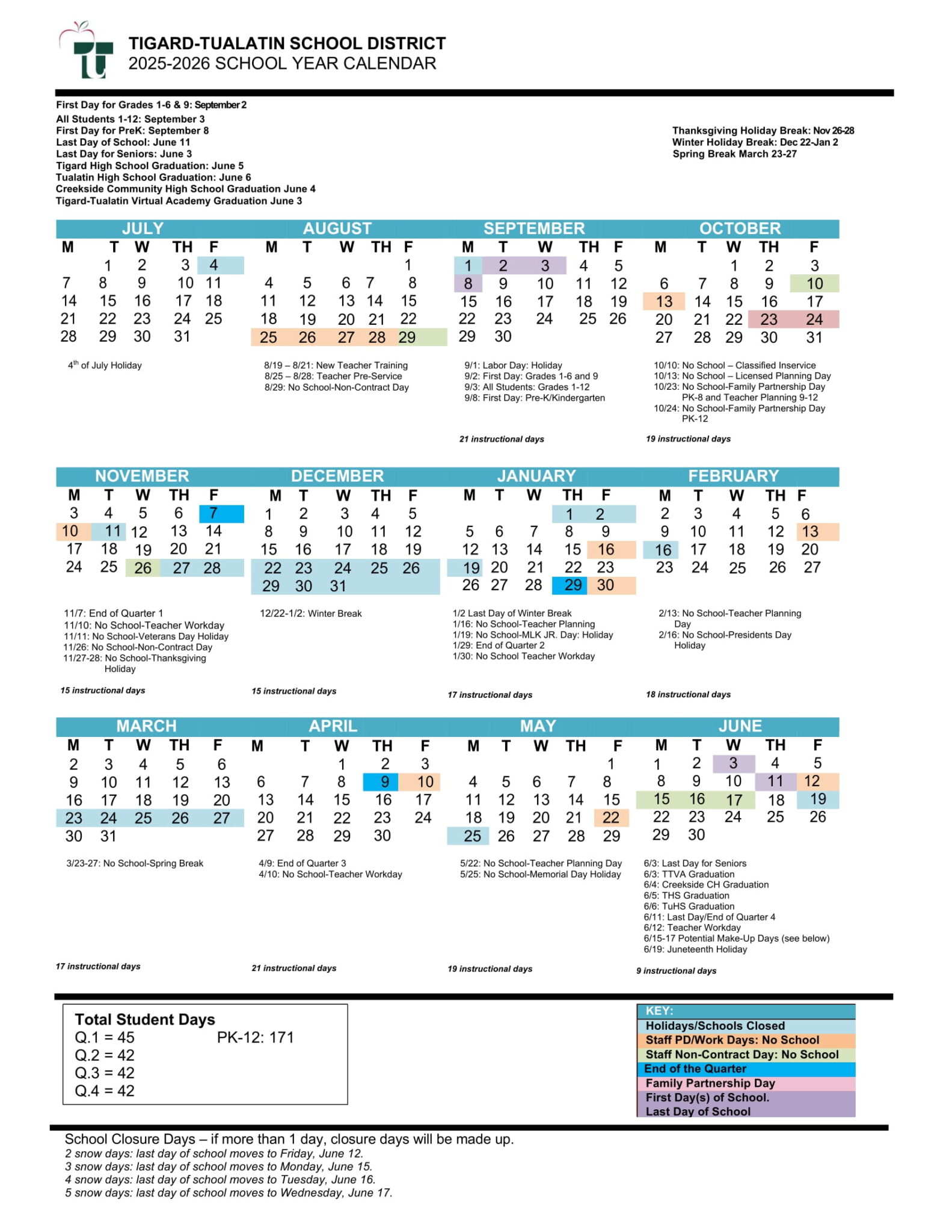 TIGARD TUALATIN SCHOOL DISTRICT OR Calendar 25 26 Revised pdf EduCounty