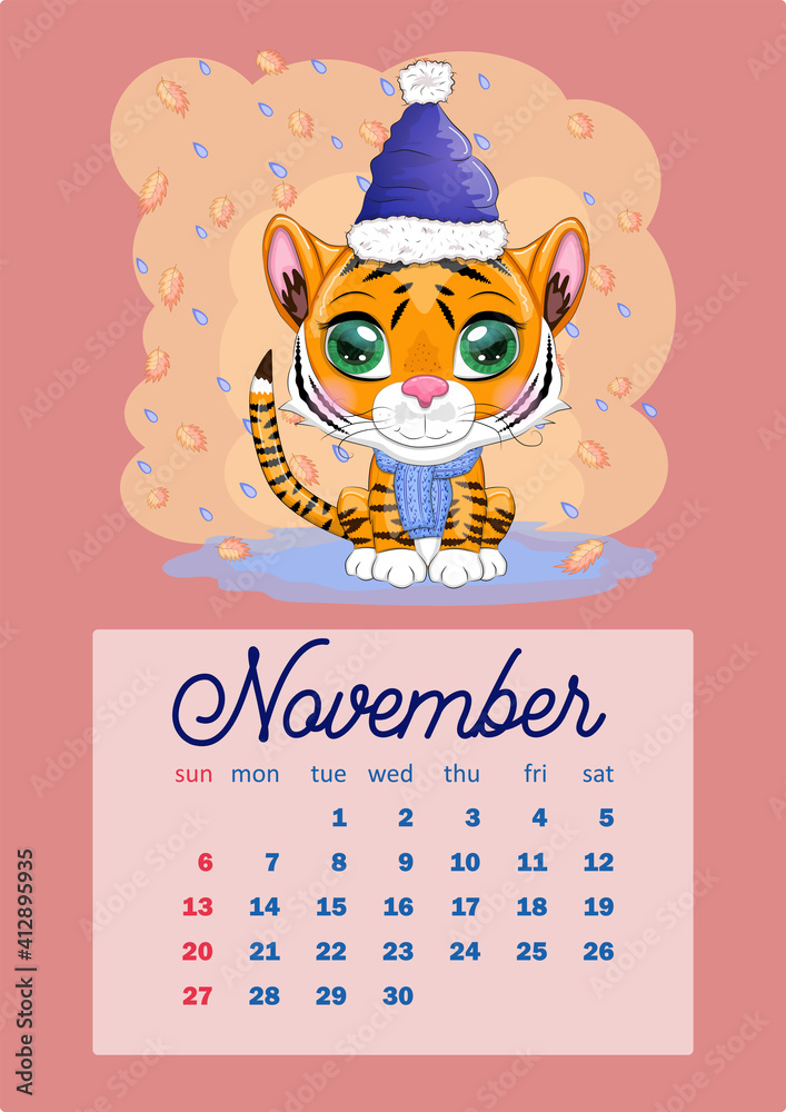 Cute Tiger Wall Calendar Template For 2022 Year Of The Tiger Chinese