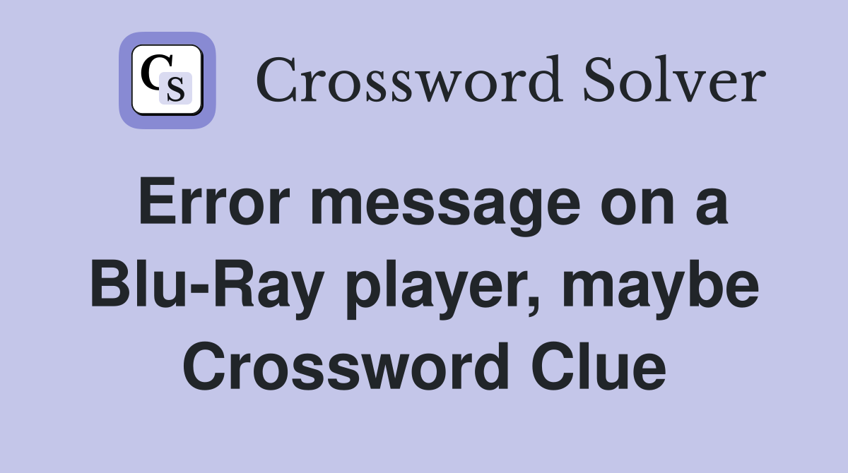 Error message on a Blu Ray player maybe Crossword Clue Answers