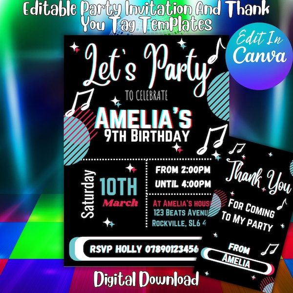 Editable Tik Tok Birthday Invitation Tik Tok Party Musical