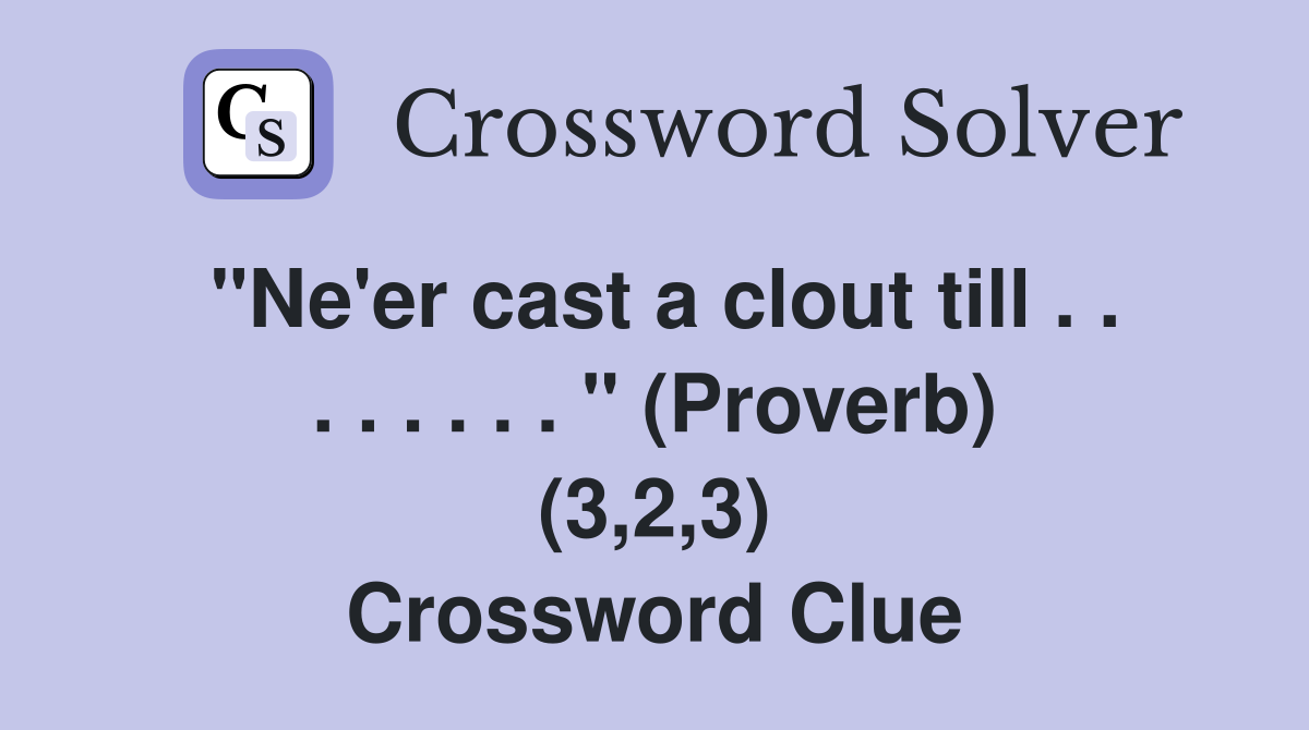 quot Ne #39 er cast a clout till quot (Proverb) (3 2 3