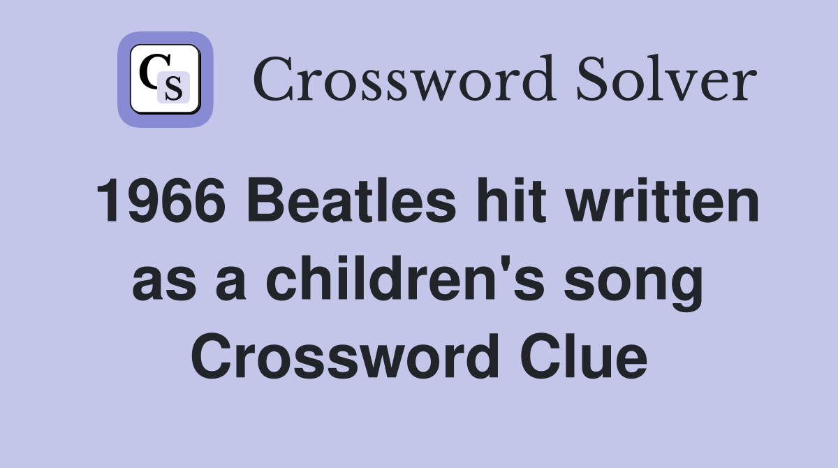 1966 Beatles hit written as a children #39 s song Crossword Clue Answers