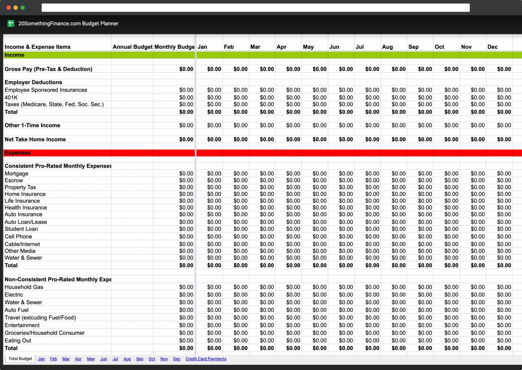 Tiller Monthly Budget Google Sheet Sheetlist