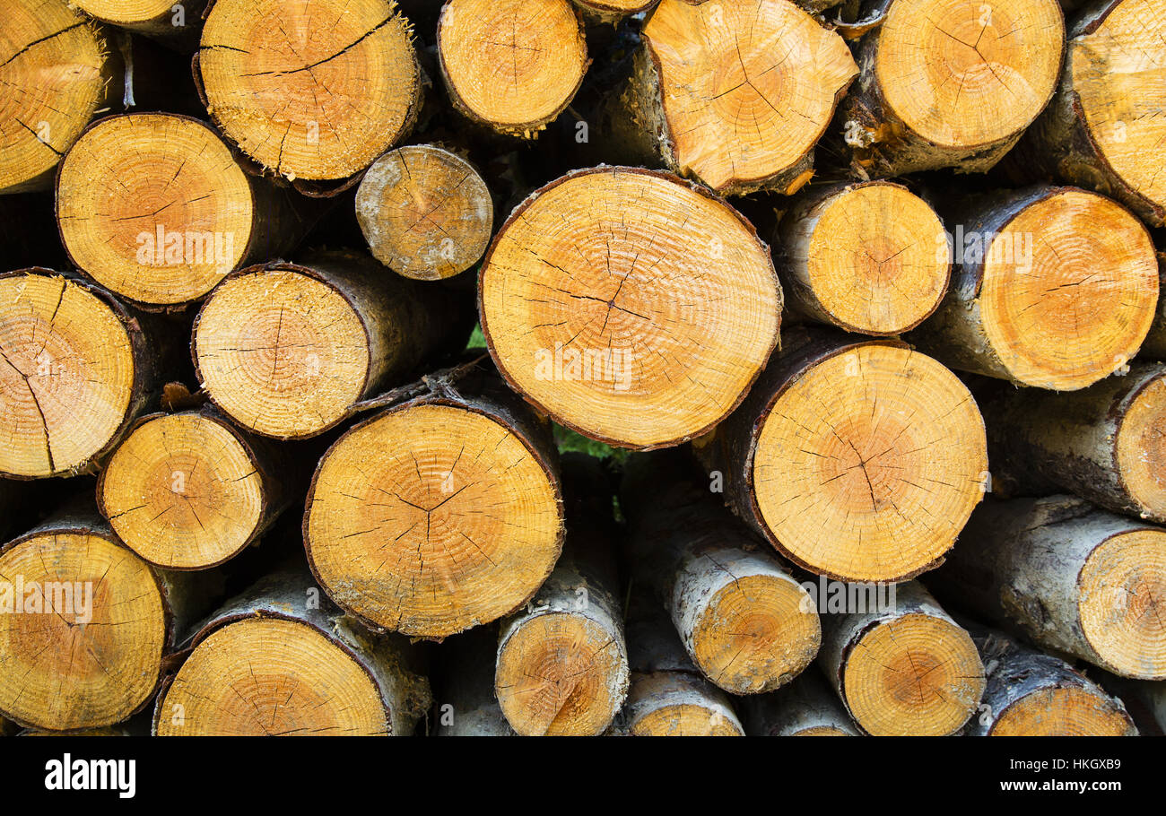 Natural Textured Background of Timber Log Pile of Various Wood Log