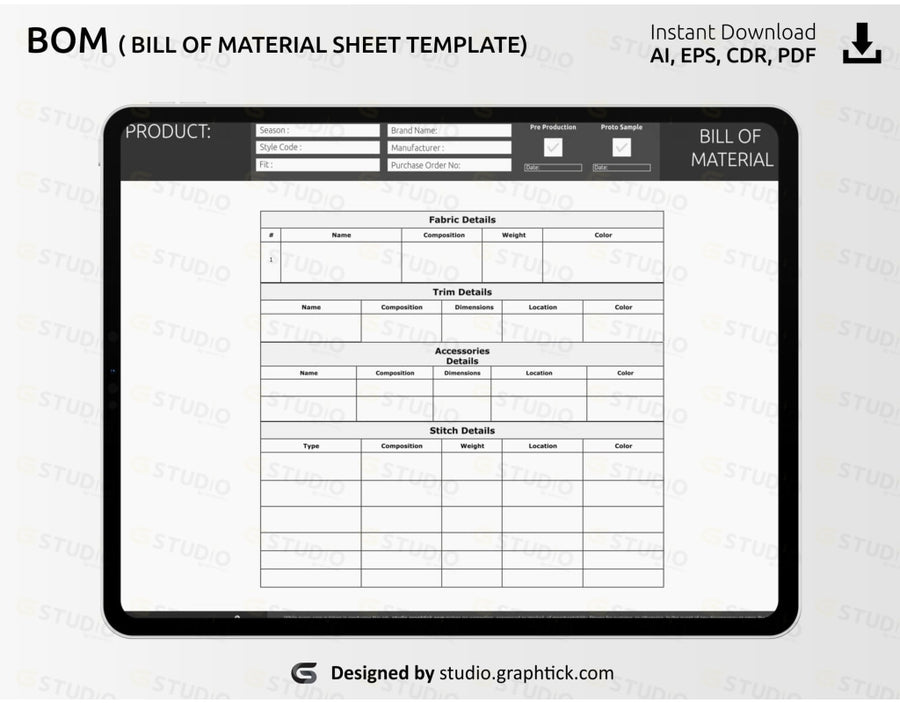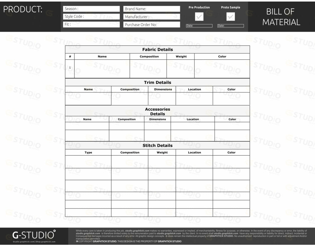 BILL OF MATERIAL SHEET TEMPLATE shop graphtick com
