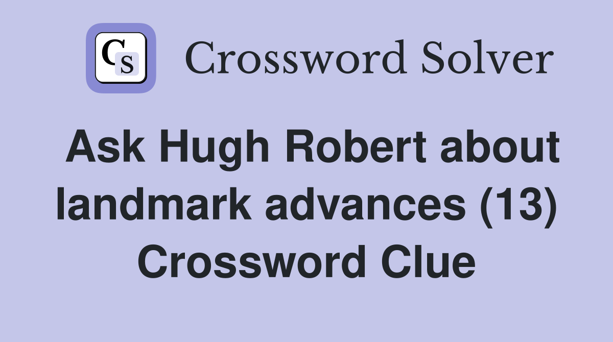 Ask Hugh Robert about landmark advances (13) Crossword Clue Answers
