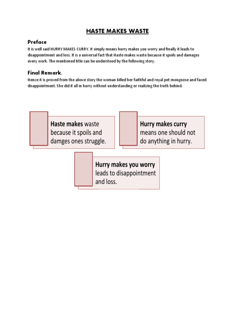 SOLUTION: Haste makes waste important story exam preparation Studypool