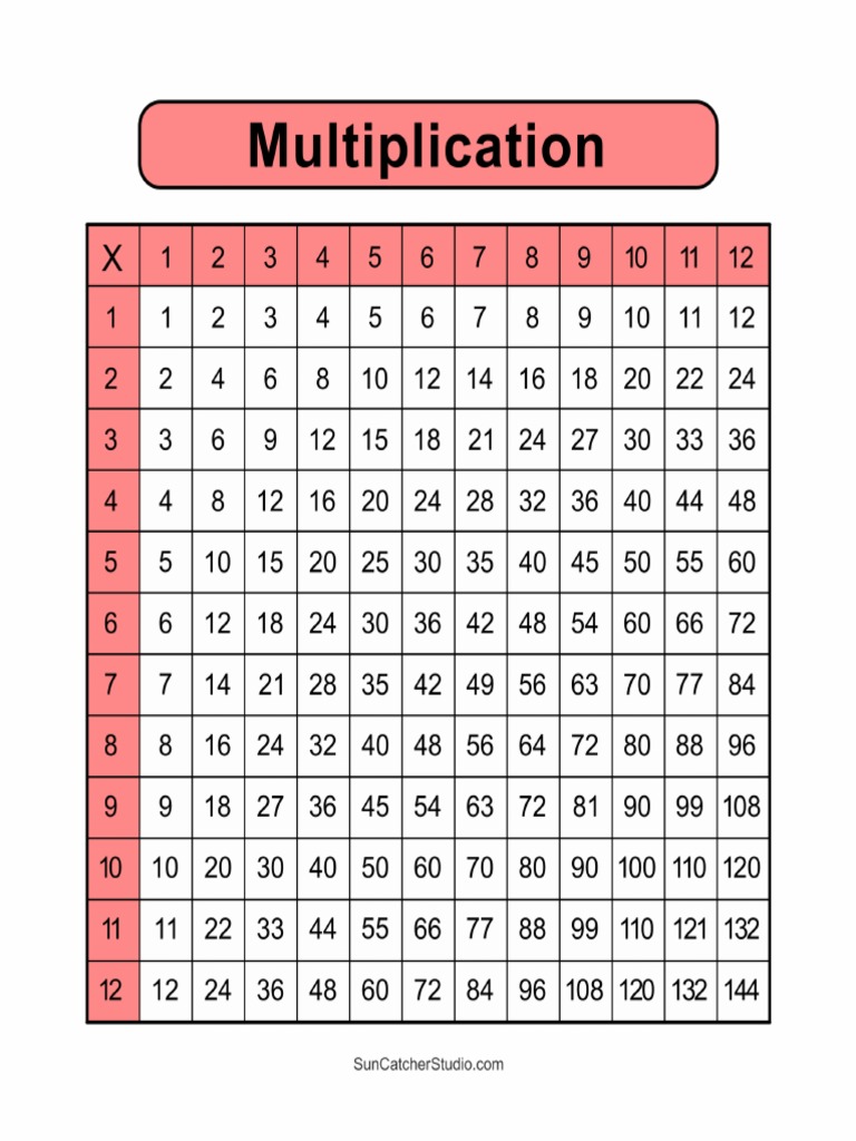 Printable Times Table Chart To 12 Multiplication Chart 50% OFF