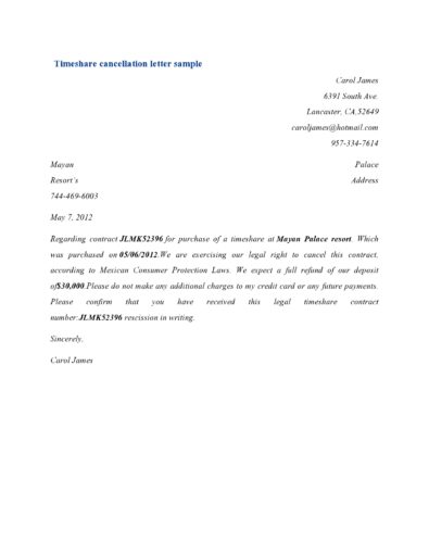40 Timeshare Cancellation Letter Samples Templates ᐅ TemplateLab