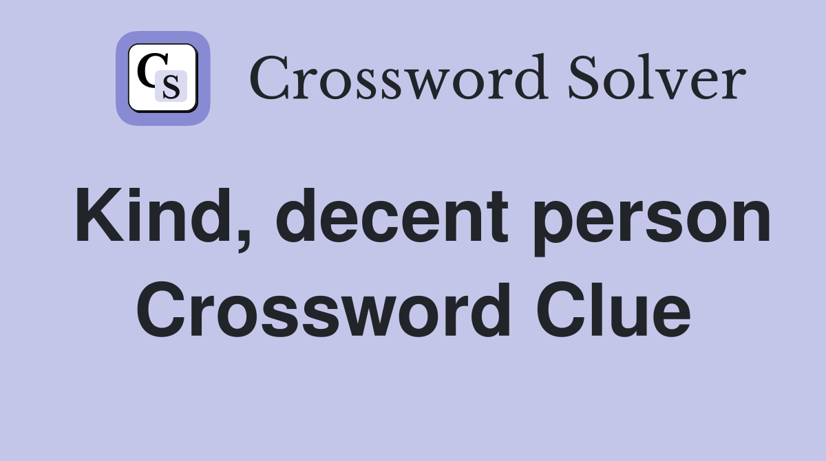 Kind decent person Crossword Clue Answers Crossword Solver