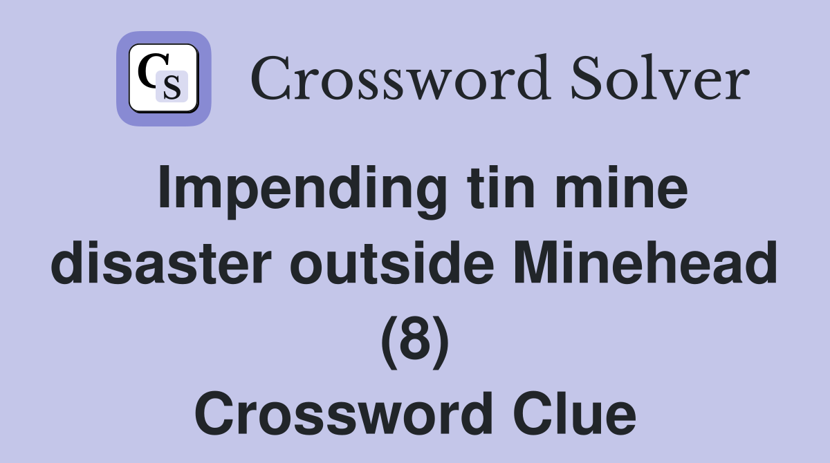 Impending tin mine disaster outside Minehead (8) Crossword Clue