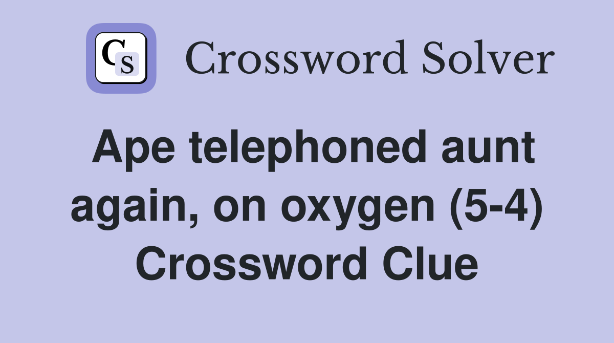 Ape telephoned aunt again on oxygen (5 4) Crossword Clue Answers