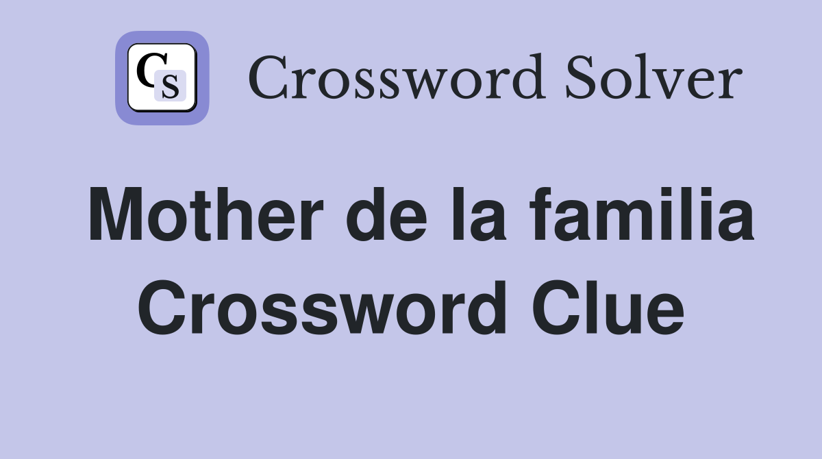 Mother de la familia Crossword Clue Answers Crossword Solver