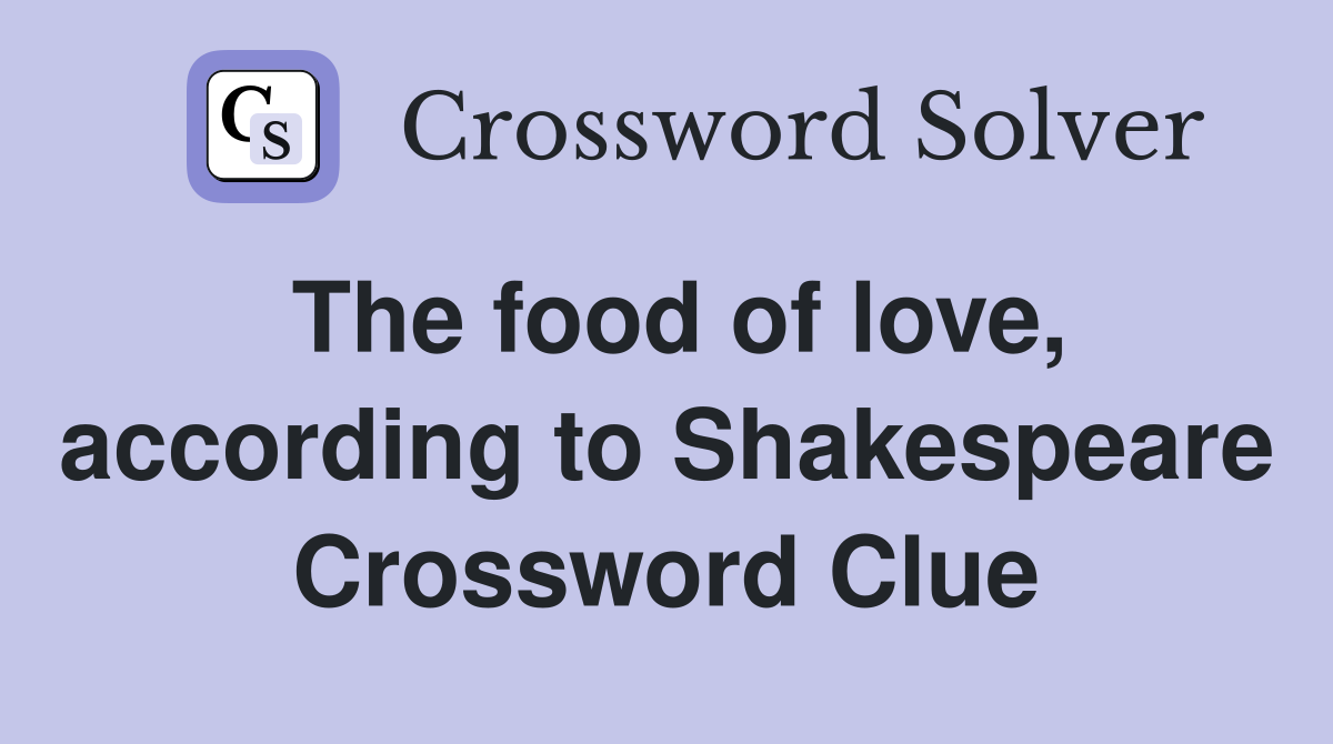 The food of love according to Shakespeare Crossword Clue Answers