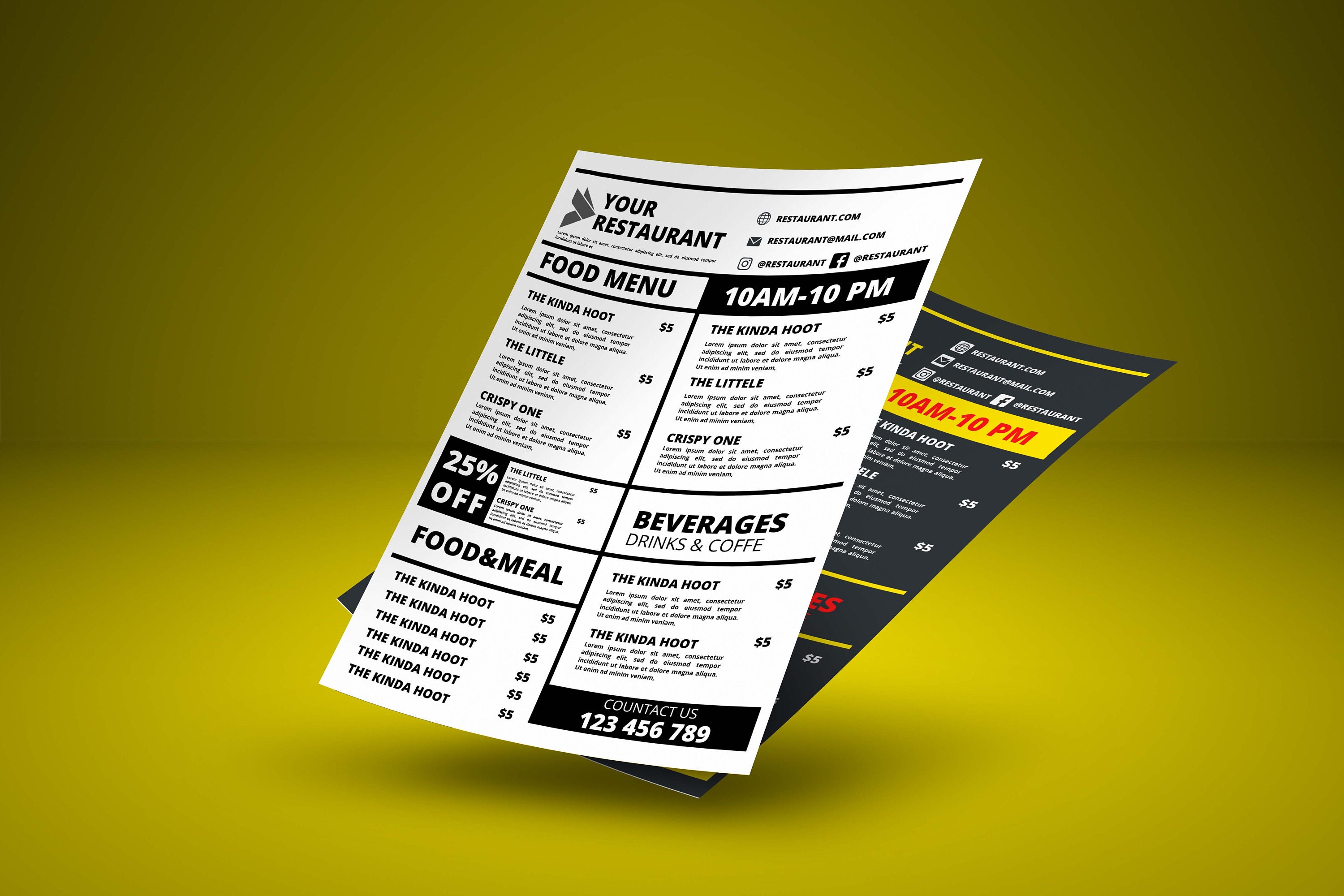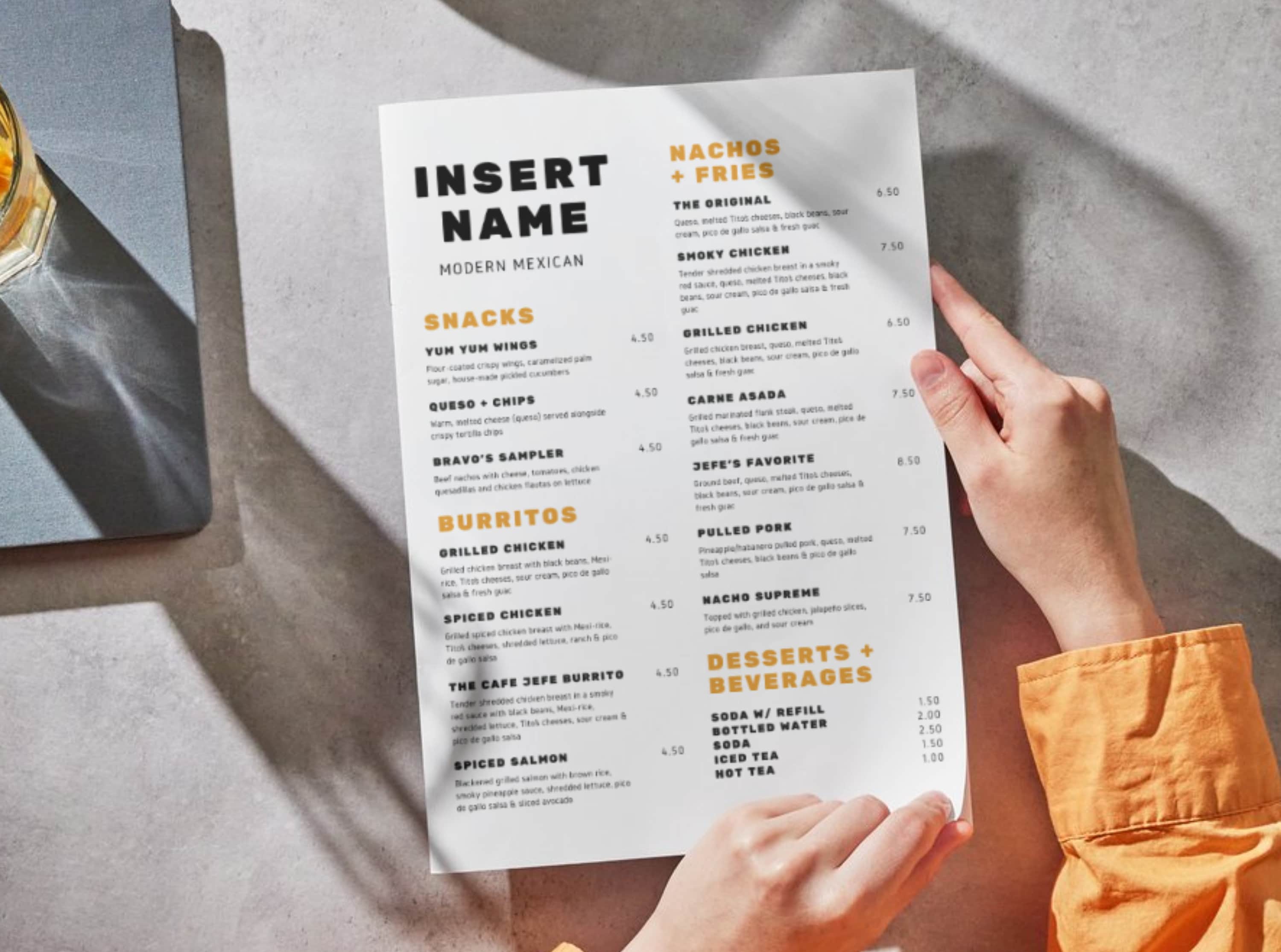 Restaurant Menu Canva Template Tabletop or Handheld Printable Food