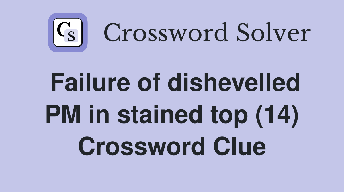 Failure of dishevelled PM in stained top (14) Crossword Clue Answers