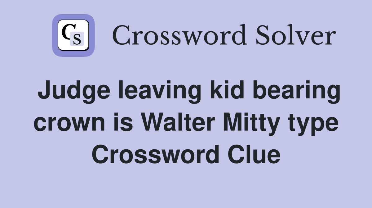 Judge leaving kid bearing crown is Walter Mitty type Crossword Clue