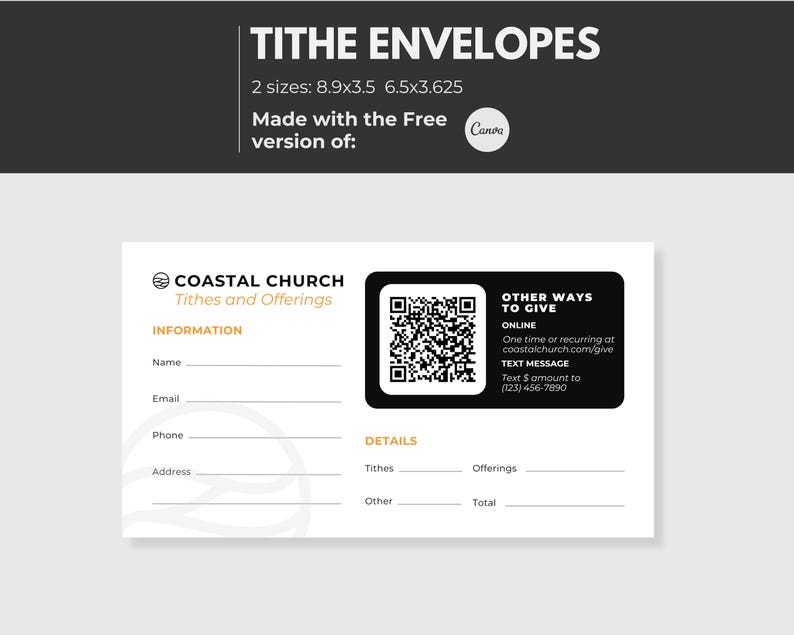 Church Offering Tithe Envelope Tithing Envelope EDITABLE Canva