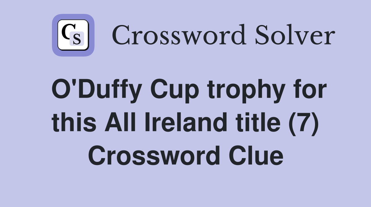 O #39 Duffy Cup trophy for this All Ireland title (7) Crossword Clue