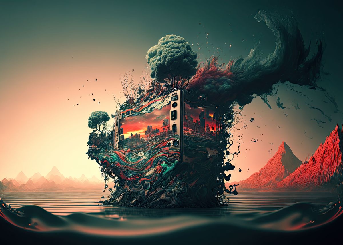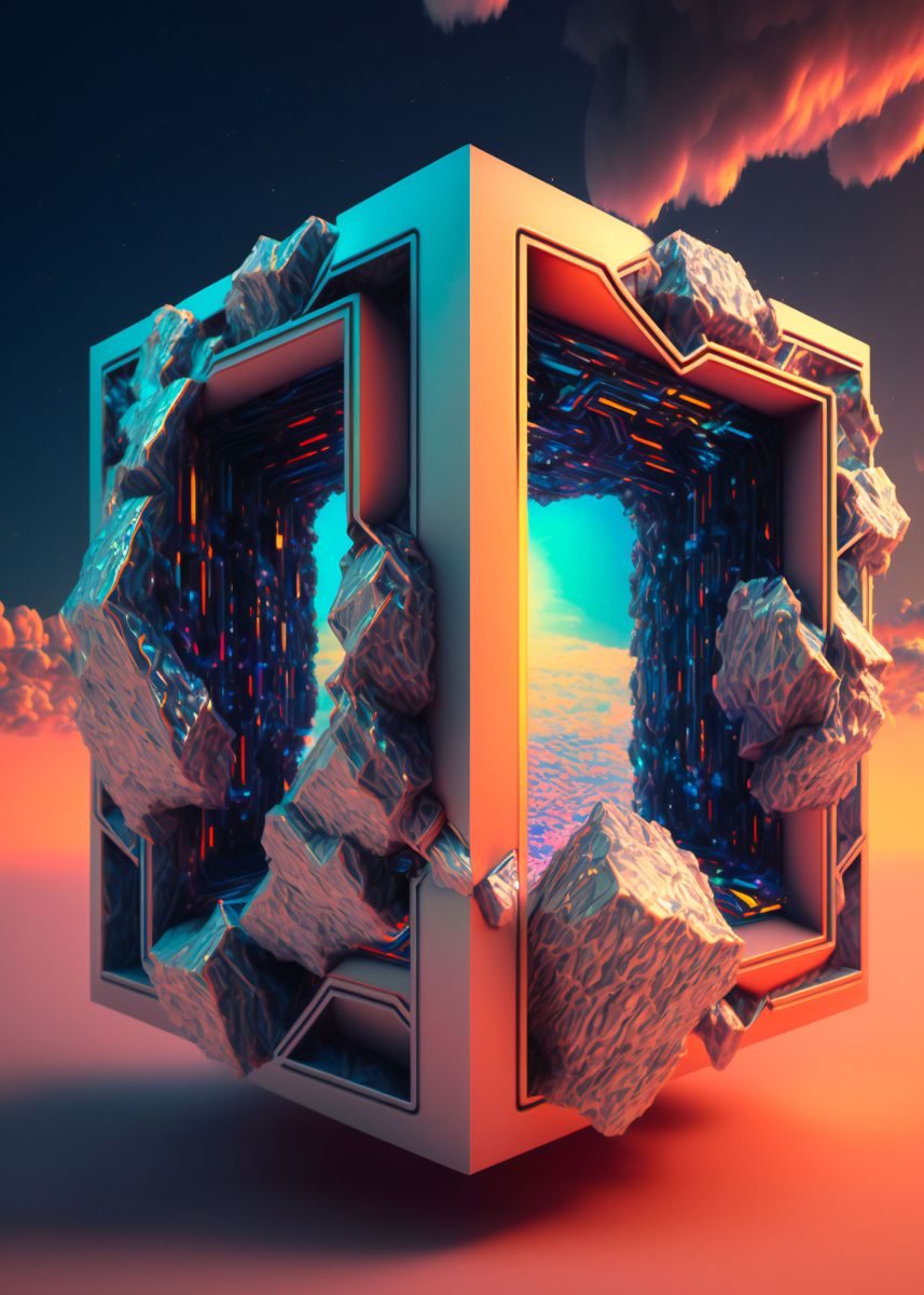Premium Photo A colorful wave is coming out of a cube that is on a