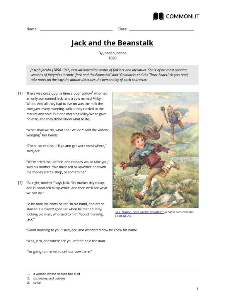 Jack and the Beanstalk Alternate Ending for K 2nd Grade