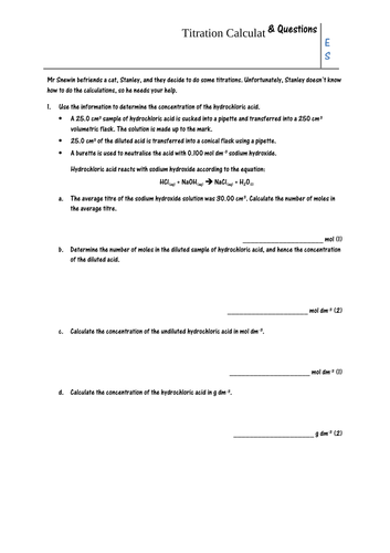 Titration Calculations and Questions Worksheet Teaching Resources