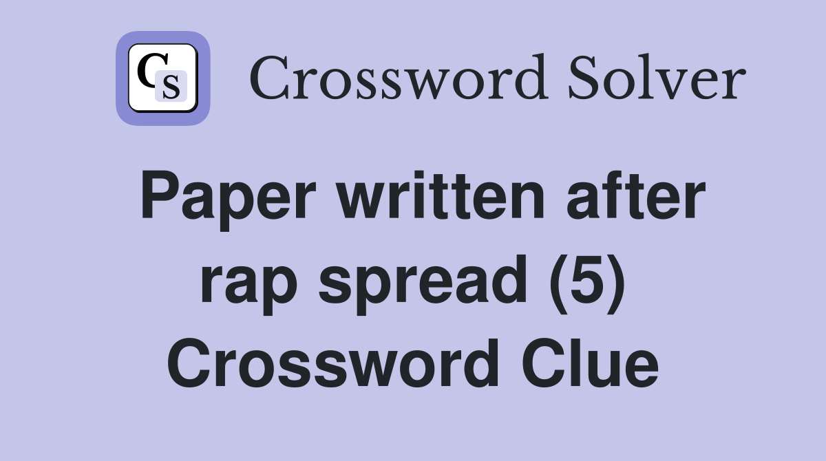 Paper written after rap spread (5) Crossword Clue Answers Crossword