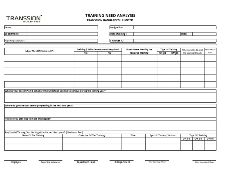 Training Needs Analysis Template 5 Free Templates in PDF Word Excel